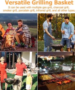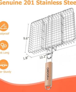 - [Portable with Detachable Wooden Handle]: ORDORA BBQ basket designed with detachable heat resistant wooden handle for easy to hold. You will remove it from the grill basket easily. Upgraded slid lock enable easy flipping of BBQ grilled foods. It’s ideal for grilling burgers. steaks. seafood. vegetable. fish. meat. shrimp and other delicate BBQ foods