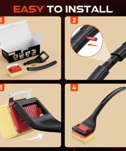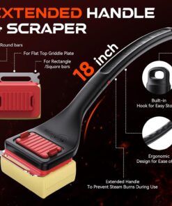 - MULTIFUNCTIONAL GRILL SCRAPER: The brush head of the grill cleaning brush is equipped with a scraper that can adapt to various grill shapes. Through the precise contact angle. it can quickly remove stubborn grease and heavy carbonized dirt. and easily remove sticky residue