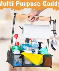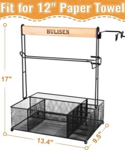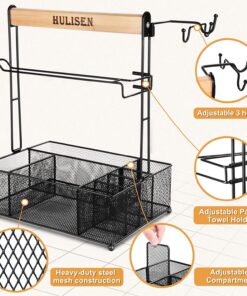 - Large Compact Storage: Wide base is divided into 7 compartments can easily keep utensils. spices. condiments. napkins. plasticware or cleaning supplies all together without taking up much space. Built in paper towel holder. fit for standard size kitchen paper towel. Come with utensil hooks. convenient in holding cooking and grilling tool. Keep all your supplies in one place. Easily take back and forth between kitchen and backyard table.