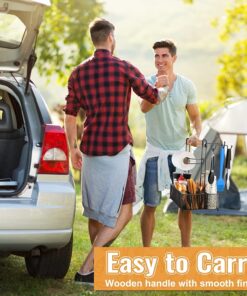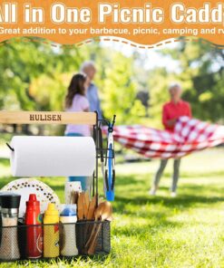 - Convenient in Carrying stuff In and Out: With smooth finish wooden handle which make carrying grilling and cooking utensil in and out much easier. Fit for tailgating. outdoor cooking. camping. backyard party. grilling. picnic. camper barbecue. and rv. You can also use it as cleaning caddy. kitchen table caddy. picnic basket and condiment caddy.