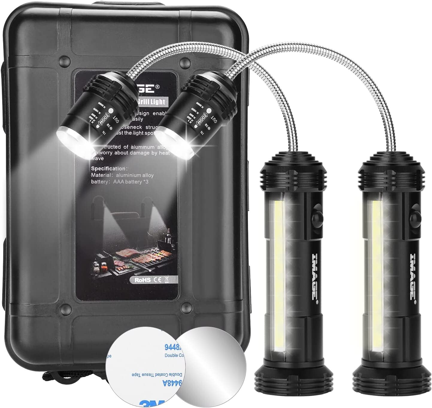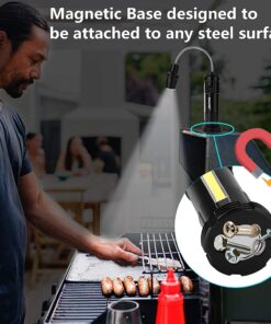 This BBQ grill light is possessed of a powerful magnetic base that it can be abosorbed on most metal surfaces. It is equipped with 360° gooseneck that makes it adjust the light to any position. The focus and the range of swivel head light can be adjusted to deal with different purposes of use.