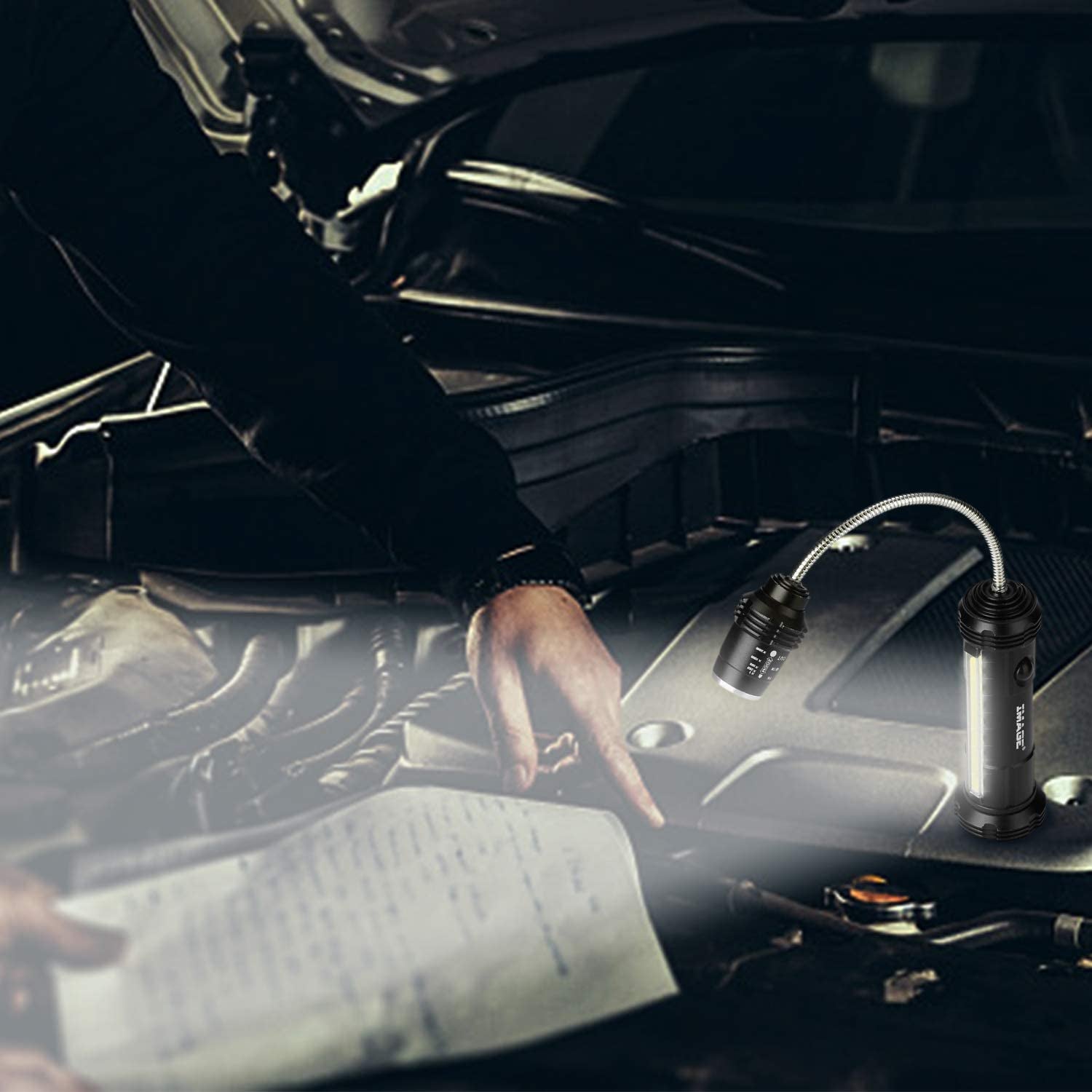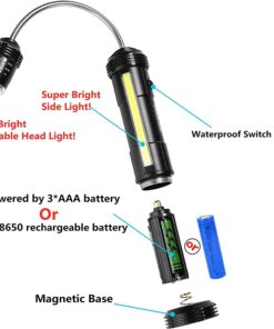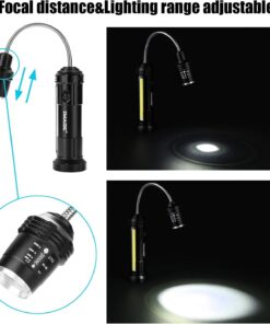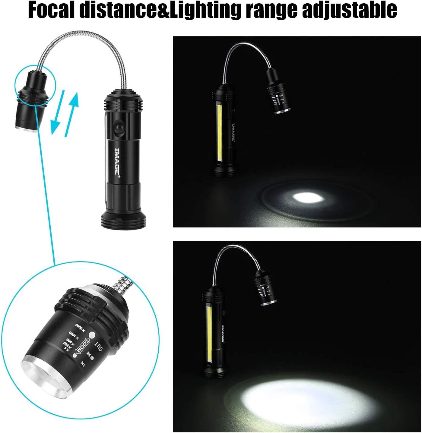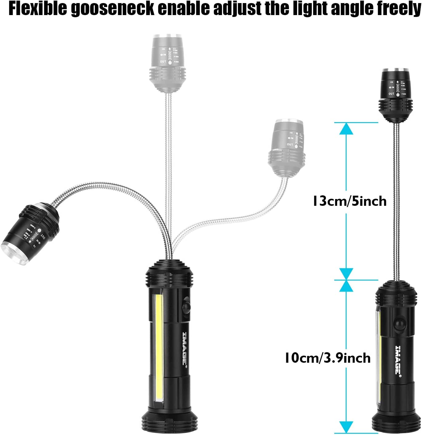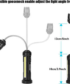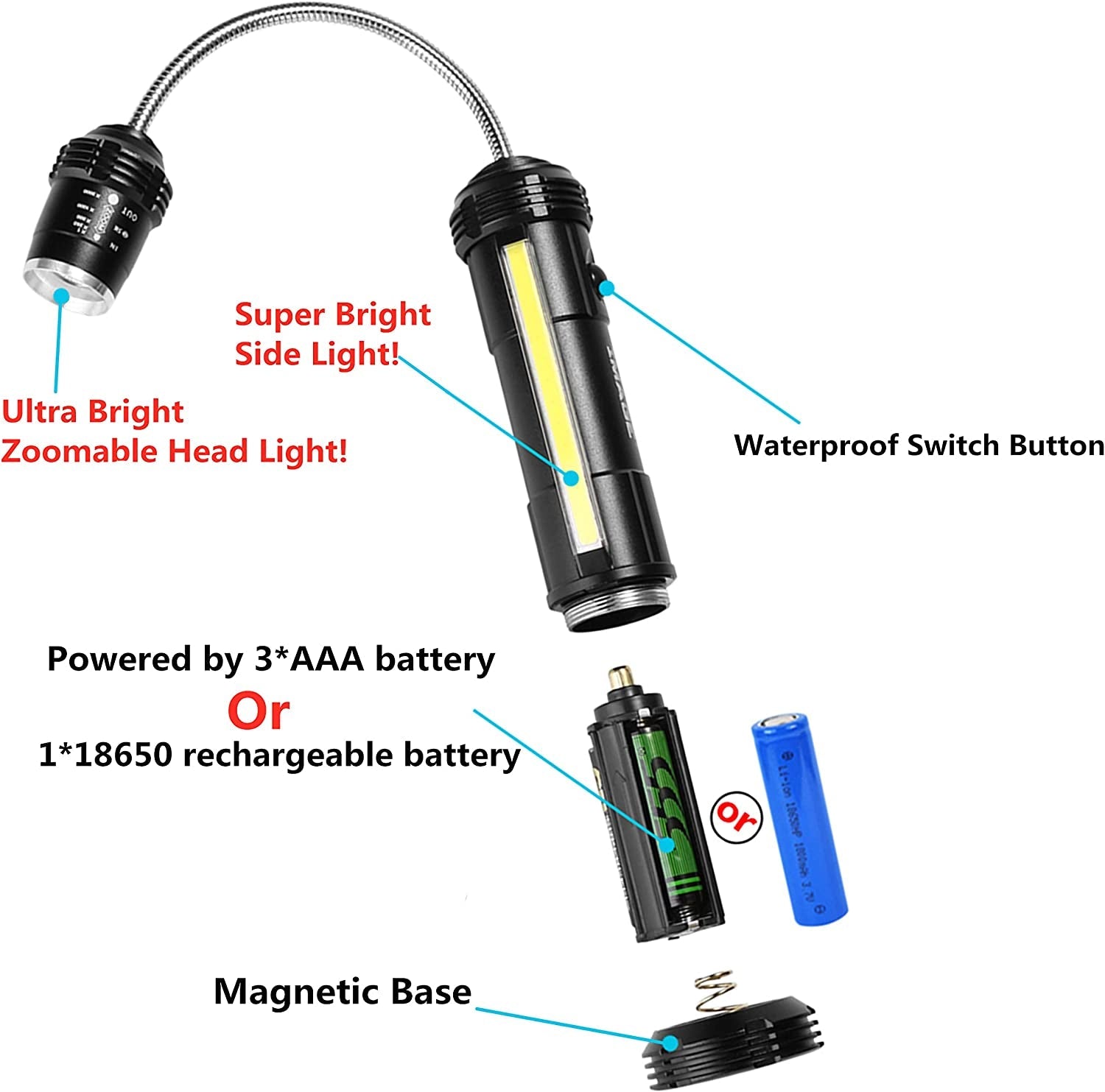- 360-DEGREE FLEXIBLE GOOSE NECK & SWIVEL HEAD: It is equipped with a 5 inch and 360 degrees gooseneck that makes it possible to adjust the light to any position. That is to say. it can help you adjust the direction of illumination. The focus and the range of swivel head light can also be adjusted to deal with different purposes of use.