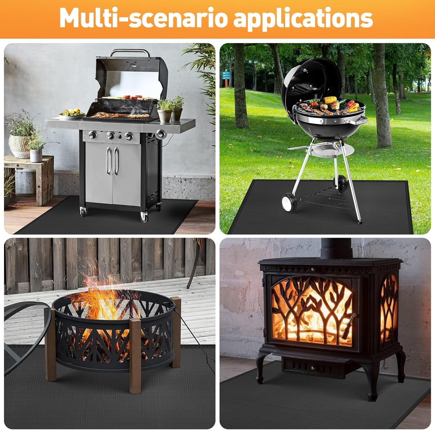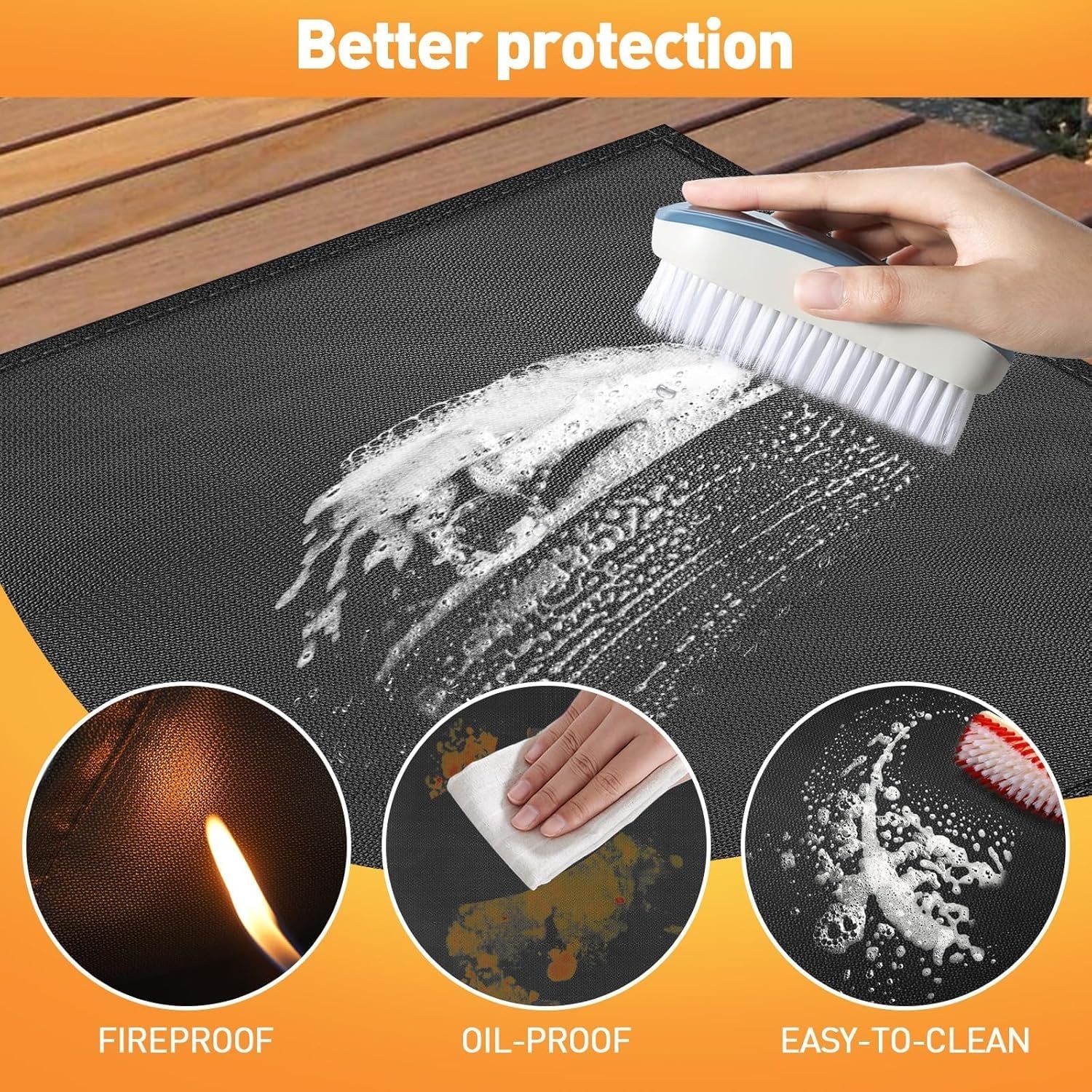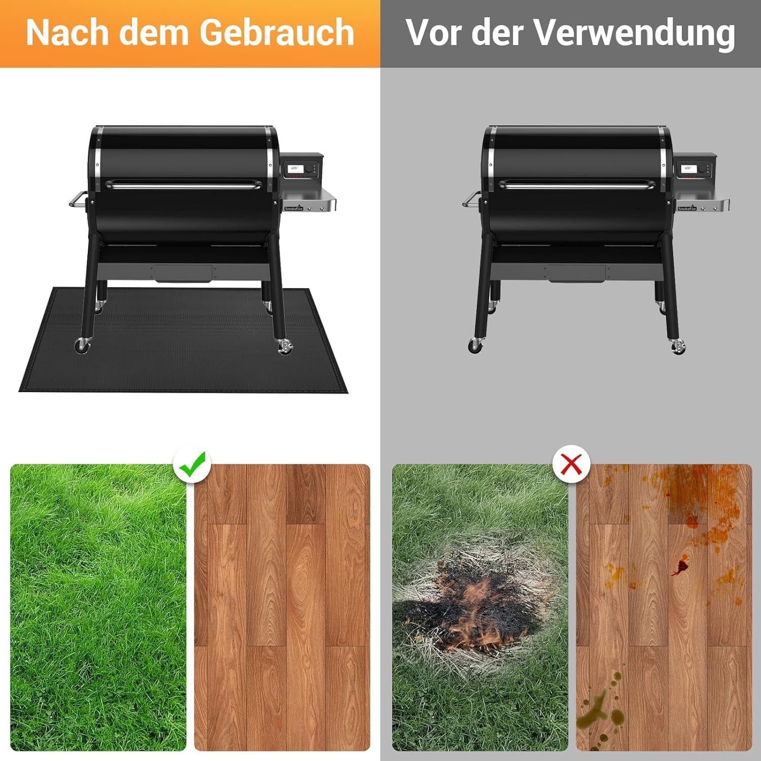 Grill Mats for Outdoor Grill – KANHIRO 65X48 Inch Fireproof Double-Sided Grill Pad and Patio Protector. Oil-Proof Waterproof BBQ. Grill Pad for Floor. Camping. Lawn Protection