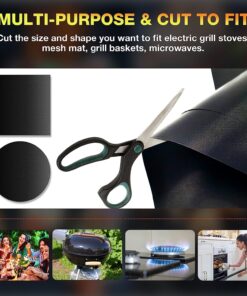 - EASY TO CLEAN AND REUSABLE- Just wipe the reusable grill matt with a soft damp cloth to remove all food residue. Simply wipe down our grill mats with soap and warm water. They are also dishwasher safe. It can be cut to the perfect size to fit your pan. both sides can be reused over 100 times. Our grilling mat set of 6 is 30% heavier than other liners. which means it will outlast traditional liners&won’t melt. Perfect for stoves. microwaves. usable as a baking mat. pan liner. or gas range liner.
