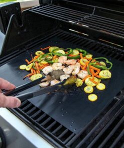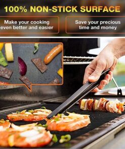 - NON-STICK MULTIFUNCTIONAL GRILL MATS- You can grill without grease and the grill mat prevents tiny food and vegetable drops. Food leaves grill marks and cooks evenly. perfect for grilling veggies. fish. seafood.chees. potatoes and everything else you like.Non-stick black outdoor grill pad not only protects your grill but also eliminates the need to clean up dirty grills.100% non-stick bbq mats for grilling makes your cooking easier and enjoy the fun of grilling with your family and friends!