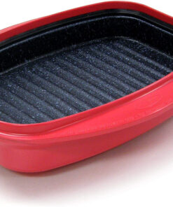 Microhearth Grill Pan is a revolutionary pan used in your microwave that its cooking results may surprise you. The results are moist and flavorful foods that utilize the microwave oven’s convenience; while enduring natural flavor and freshness. With this Pan. you can saute and grill your favorite foods and recipes in the microwave in less time than usual. You’ll find this cookware is easy to use and will soon become a favorite in you kitchen to grill sandwiches. vegetables. meat and fruit. A wise investment saving you both time and money. With Microhearth Grill Pan. you can now enjoy your favorite foods and recipes at anytime and at wherever microwave oven is accessible. It is even great for RV. school dorm and break room. Microhearth Grill Pan is durable and high-heat resistant that components that nest together making it versatiles and compact for easy storage. Nonstick coated metal pan with raised base gives food seared grill marks and keeps them out of drippings. The durable body is formulated to safely perform under hottest temperatures. Ceramic-coated metal Lid with standing handle allows you to conveniently rest it upright so moisture does not drip on the counter. Ceramic-coating is especially designed for use in the microwave and eliminates the microwaves that normally causes dryness by penetratin through the food druing cooking.