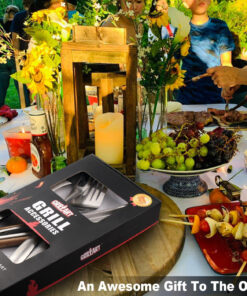 | Contains | A Wire Free Safe Sponge Grill Brush | A Wireless Meat Thermometer | A Large Grill Basket | BBQ Tongs. Fork. Spatula. Insulation Glove | 10 PCS Grill Skewers with slider |
