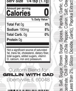 - INGREDIENTS: Salt. Brown Sugar. Garlic. Onion. Paprika. Spices