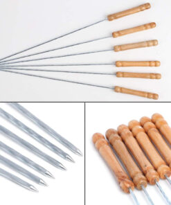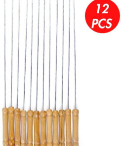 - 【PERFERT LENGTH】: 12 inch (including handle).The whole package contains 12 metal strings. Long barbecue skewers keep your hands away from heat source.The wooden handle of the kebab will protect your hands from getting burned .The ergonomic handle is comfortable to hold and easy to use with food tong.