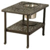The Hanamint Berkshire 20 Round Ice Bucket Side Table. featuring a Desert Bronze Finish. is the perfect addition to your outdoor dining experience. With Berkshire’s charming crisscross pattern. this set elevates the look of your table when hosting family and friends. Whether you’re preparing for a gourmet meal or a casual gathering. Berkshire strikes the ideal balance between sophistication and comfort.
