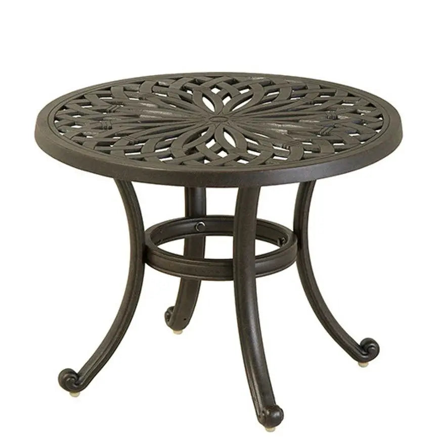 The Hanamint Mayfair 24 Round Tea Table is a perfect addition to your outdoor space. offering both sophistication and comfort in the Mayfair collection. The intricate trellis design and scrolled edges bring out the elegance of the Mayfair collection. while the Desert Bronze finish adds a rustic. earthy feel. This timeless collection ensures stability and durability for many seasons to come.