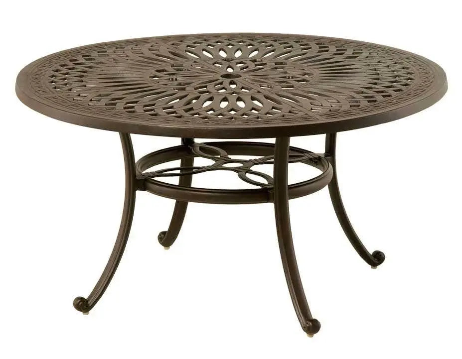 The Hanamint Mayfair 42 Round Outdoor Coffee Table is a testament to the perfect blend of sophistication and comfort found in the Mayfair collection. Designed for those who appreciate elegance without compromising on the relaxed charm of casual living. the Mayfair collection features an artful trellis design and scrolled edges that accentuate its graceful beauty. The Desert Bronze finish adds a rustic and earthy touch. enhancing the timeless appeal of this classic collection.
