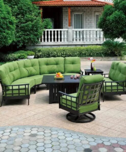The Stratford Collection is designed with your space and your style in mind. Choose from seven different seating pieces to build the loveseat. sofa. sectional. or crescent sectional that you want! For individual seating. you can have your choice of Club Chair. Swivel Rocker. and Swivel Glider. Hanamint’s Sherwood Table Collection in Terra Mist Finish nicely complements Stratford seating. Add a Sherwood Coffee Table. Fire Pit Table. End Table. or Ice Bucket Table to complete your set. The options don’t end there! Choose from the cushions we have in stock. or we will help you find and order the cushions you want!
