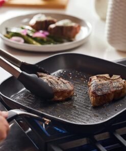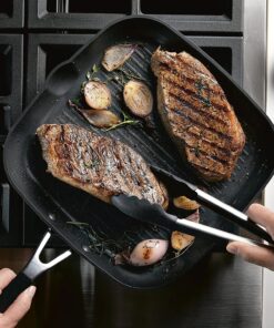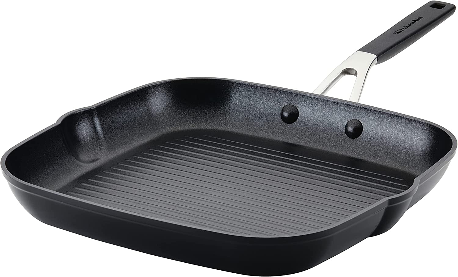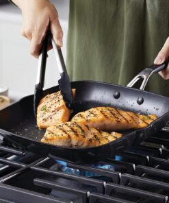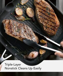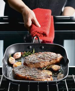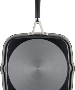 Hard Anodized Nonstick Square Grill Pan/Griddle with Pour Spouts. 11.25 Inch. Onyx Black