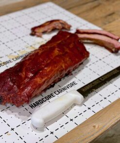 Our disposable cutting boards are generously sized and made in the USA. Big enough for brisket. and sturdy enough for an electric knife. these cut board are the perfect addition to your deer camp. vacation home. competition BBQ kit. catering rig – you name it! We’ve been known to use it for easy cleanup on ribs in our home kitchens. Â