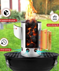 - 【RAIPD FIRE】- First you can put some crumpled paper at the bottom of charcoal starter. then fill it with an amount of briquette and lit it through different air vents. Enclosed frame for better concentrate heat and facilitate burning. No more lighter fluid