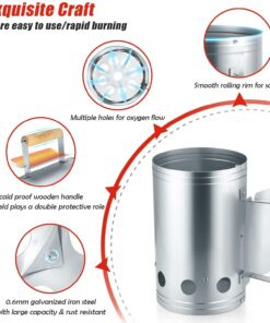 - 【FINE CRAFT】- Height of 10.6in and diameter of 6.7in. Sufficient capacity provides enough coals for barbecue. Hold up to about 4 pounds of charcoals. multiple holes for fast ignition and allow you to check how well is it burning. No melted handle or iron