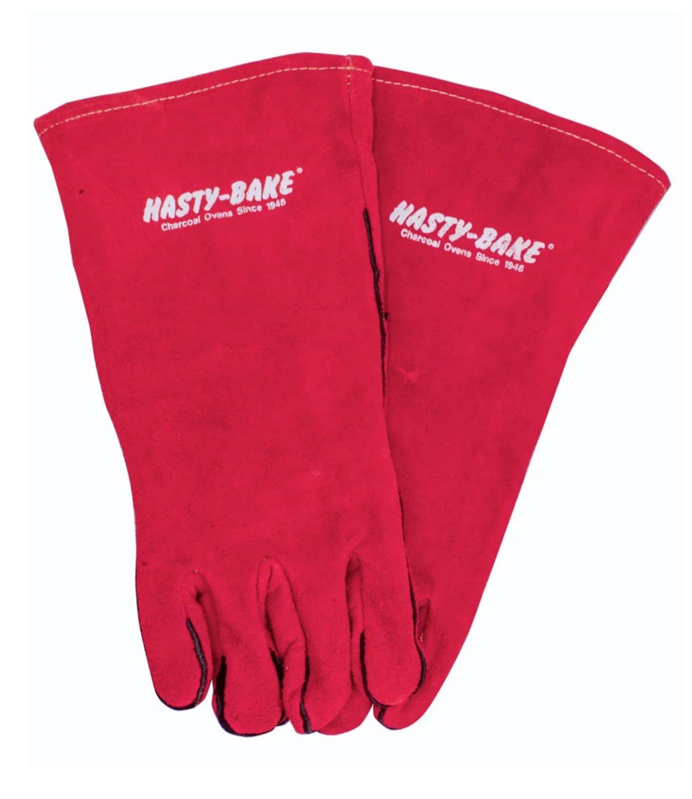 These sturdy yet supple. kevlar-reinforced leather gloves are great for pulling out the charcoal firebox. hot grates. adding charcoal. or any other situation that might be hot on the hands. The Hasty Bake logo is on each glove. Sold as a pair.