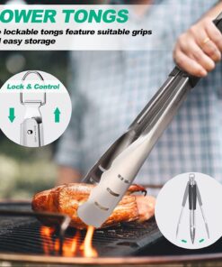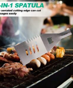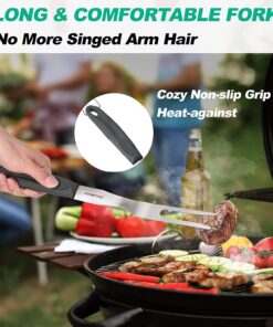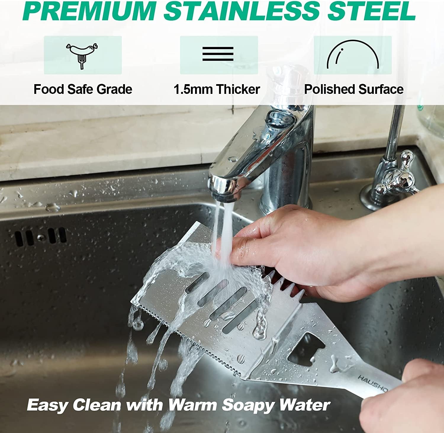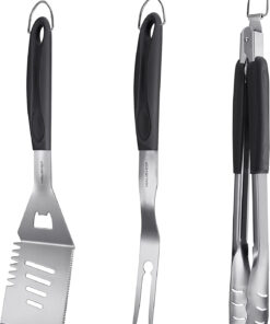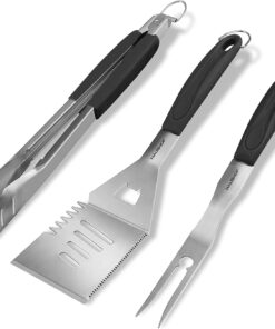 HAUSHOF Large Grill Accessories Heavy Duty BBQ Set Gifts for Men/Women – Premium Stainless Steel Spatula. Fork & Tongs (16.5/16/16.5 In.). Barbecue Utensils Tool Kit Gift for Grilling Lover Outdoor