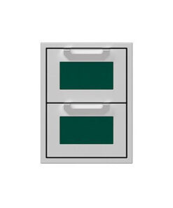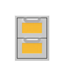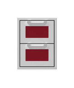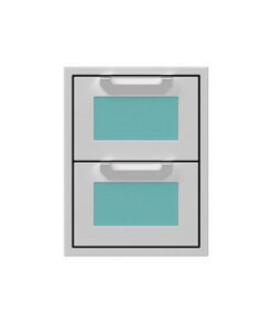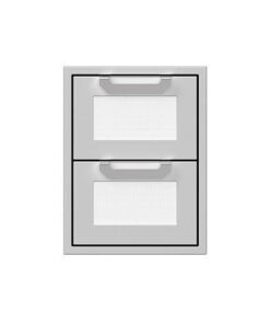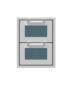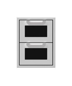 Hestan AGDR16 Double Storage Drawers. 16-Inches provides a high quality grill component to complete your perfect outdoor kitchen. The full extension. sliding double drawer storage unit features a welded stainless steel construction for a blend of style and durability that will stand up to the outdoor elements. The soft-close hinges ensure easy opening and closing of the double drawers that offer convenient storage opportunities while the motion activated interior lighting provides great visibility during evening grill sessions and entertainment. The drawers also features commercial-grade handles and recessed Marquise accented panels to complement the beauty and function of the Hestan line.