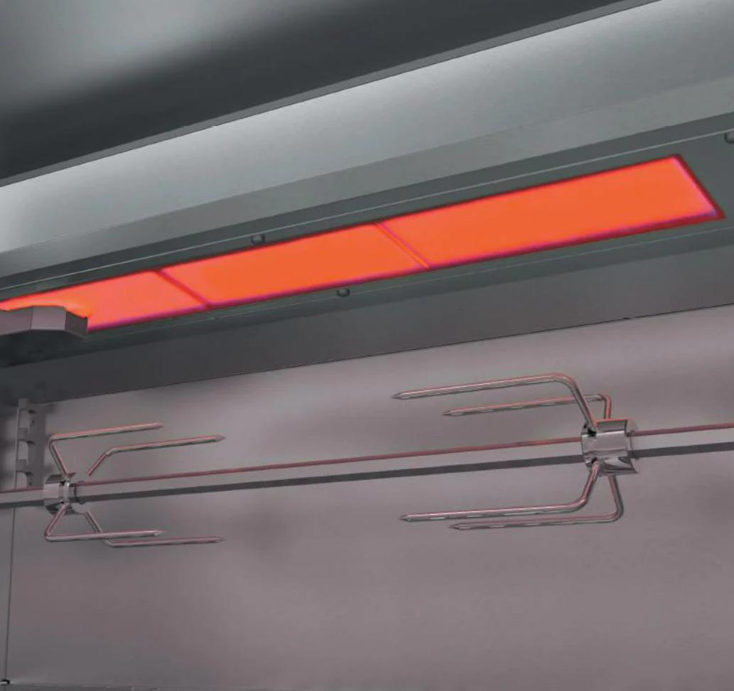 - Patented ceramic infrared top burner delivers 12.000 to 18.000 BTUs – perfect for searing/finishing and cooking with the included rotisserie.