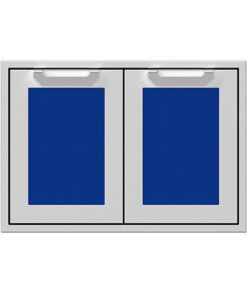 Create a premium outdoor kitchen that offers generous storage with the Hestan Double Access Doors Marquise. These doors come in 30. 36. and 42 widths and feature heavy gauge stainless steel construction and commercial-grade handles. The center of the doors can be customized with the recessed Marquise panel with a choice of vibrant or subdued colors. Adjustable hinges allow you to keep the doors aligned.