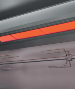 - Split-shelf warming rack (42 model only) features an upper shelf position for browning and melting under the infrared rotisserie burner. and a lower shelf position for keeping food warm.