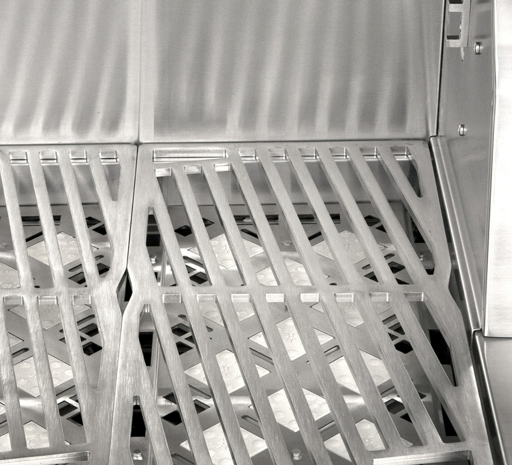 - Patented DiamondCut™ grates create a superior grilling surface and greater heat distribution with ultra heavy-duty 5/16″ stainless steel (lasered in-house).