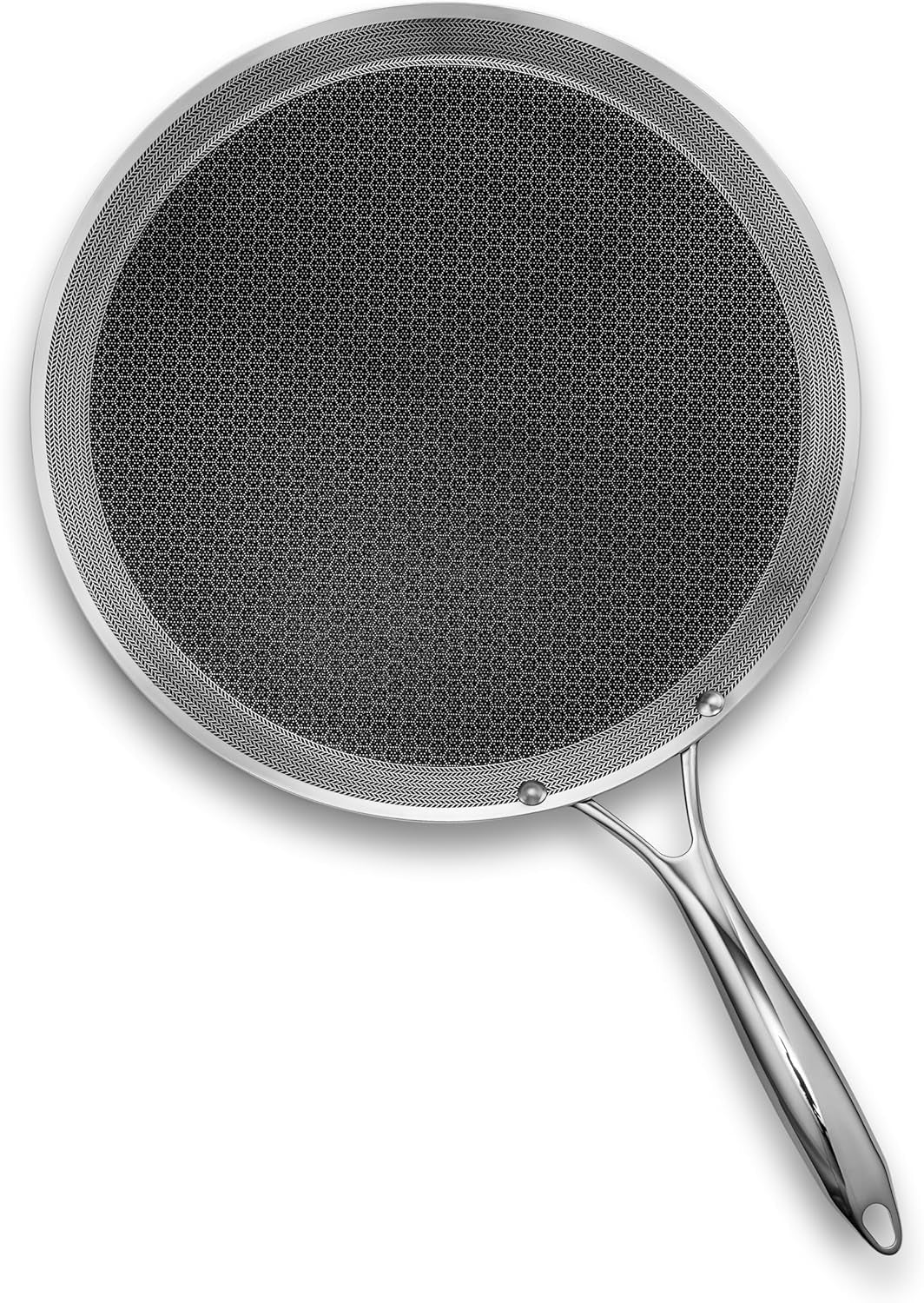 Hexclad Hybrid Nonstick 13-Inch Griddle Pan. Stay-Cool Handle. Dishwasher-Friendly. Oven-Safe up to 900°F. Induction Ready. Compatible with All Cooktops