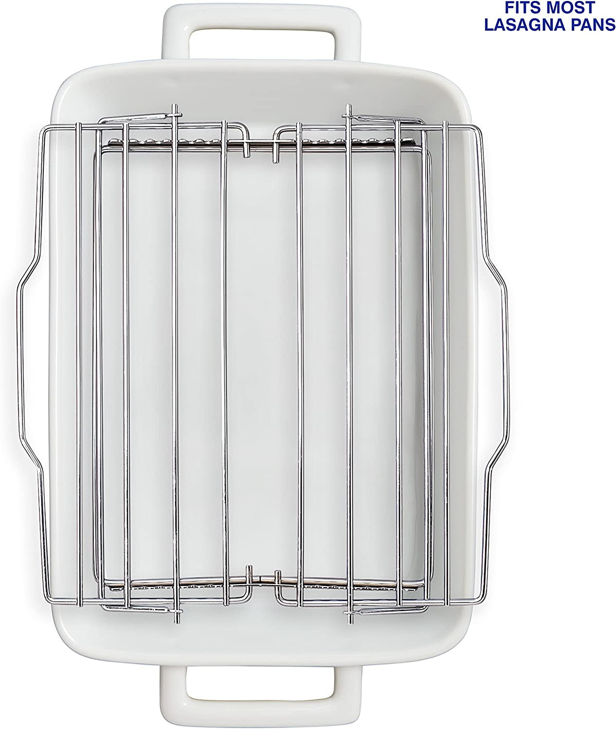 - Elevates foods above fat drippings and juices for better heat circulation. even baking. faster cooking times and all-over browning with less calories