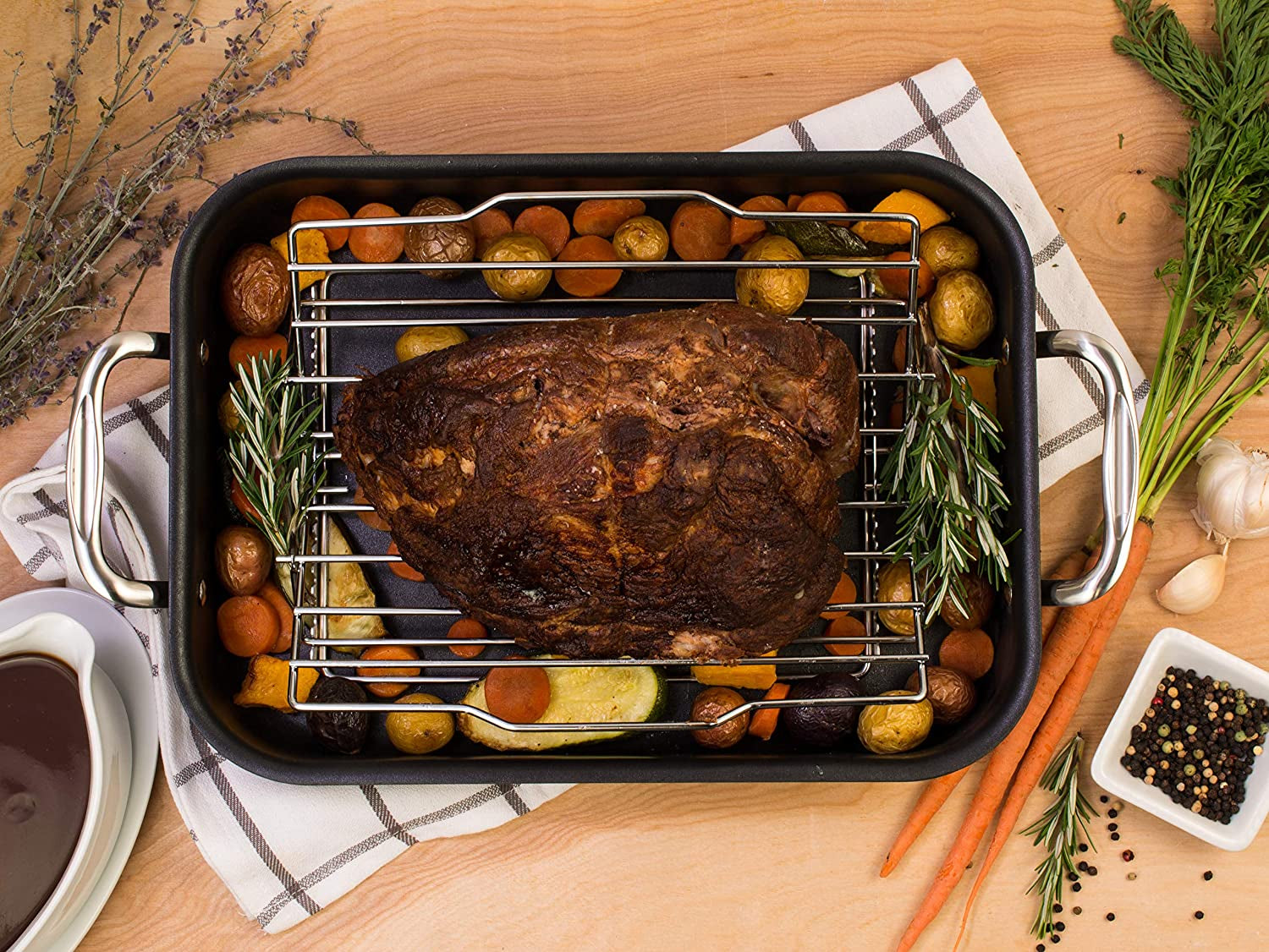 - HIC’s Roasting Rack easily adjusts to 7 positions for cooking. baking. roasting. and broiling various-size cuts of beef. poultry. pork. game. and more