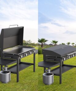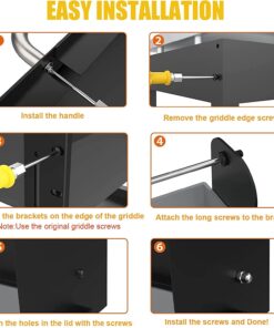- 【Convenient】Without having to lift it and hang it on the back of the griddle. install it once and free up your hands completely. You can open and close quickly and easily. Comes with a thermometer to give you more control when cooking.