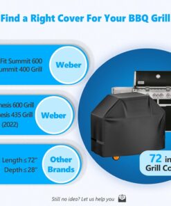 - [ Super Heavy-duty 72 Inch Grill Cover ] – Made of 600D premium oxford cloth with thickened PVC coating. HomWanna BBQ grill covers are super durable and heavy-duty. Measure: 72W x 28D x 48H. this 72 inch grill cover will perfectly fit Weber Summit 600 series gas grills. including: Weber Summit 670. Summit 650. Summit 620 and 2022 Genesis 435 gas grills. Also fit 5 to 6 burners bbq grills from Dyna-Glo. Nexgrill. Brinkmann and Monument.