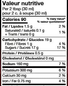 Ingredients:Â sugars (fancy molasses. brown sugar. honey). apple puree. tomato paste. apple juice concentrate. water. apple cider vinegar. Canola oil. Worcestershire sauce (distilled vinegar. molasses. corn syrup. water. salt. caramel color. garlic. sugar. spices. anchovies. tamarind. natural flavor). liquid smoke. lemon juice. salt. onion. garlic. spices.