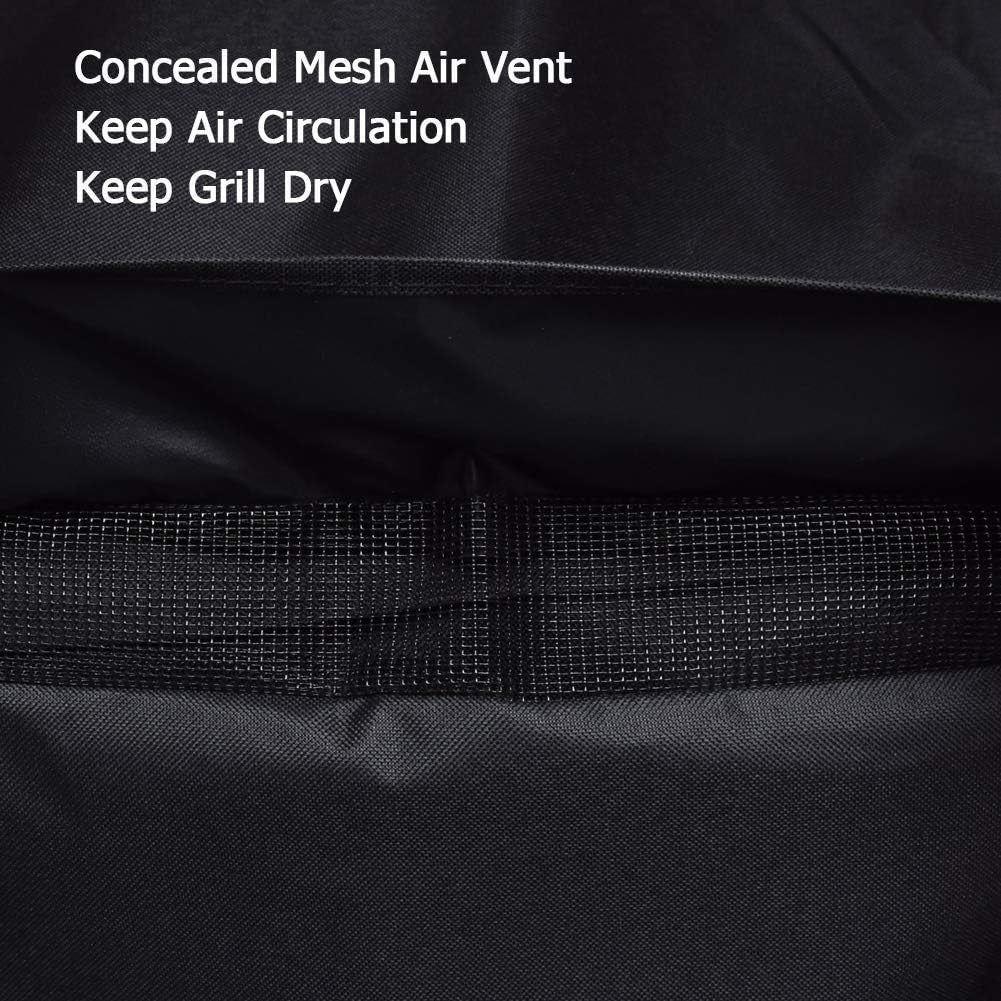 Covered Air VentsWide covered mesh vents at both sides for air circulation to let moisture escape. the air circulation can also prevent your cover from blowing away by high winds. Wind resisitance grill cover outdoor use. |