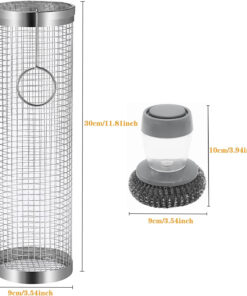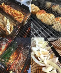 JAYUNSHY Stainless Steel Barbecue Cooking Grill Grate with Cleaning Brush. 12 Inch Rolling Grilling Basket Vegetable Grill Basket round BBQ Grill Mesh Portable Outdoor Camping BBQ Rack