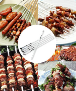 - 🍖【PREMIUM STAINLESS STEEL. PERFECT WORKMANSHIP】Metal kabob skewers sticks are made of premium stainless steel.food grade. rust-proof. heat-resistant. and corrosion-resistant. These heavy duty grill skewers are corrosion resistant and can last long. The edges of the barbecue skewers are well polished. and the metal skewers are safe to use. Metal shish kabab skewer is of solid one-piece design. The bbq kebab sticks skewers are thick enough to allow you to add weight without bending or twisting.