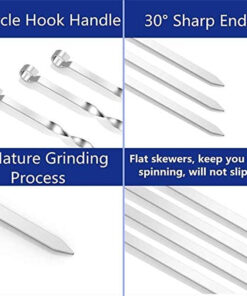 - 🍖【HANDLE HOOK. FLAT BLADE AND WEDGE TIP DESIGN】All the shish kabob skewer blade is flat and wide. The flat barbecue sticks prevent the food being skewered from rotating or moving when flipping over shish kebab skewers on the grill. Stainless steel barbecue skewers can be fully rotated so that the food can be evenly heated and seasoned around. The slanted tips of these Kabob skewers can help you pile them up easily without breaking the food.