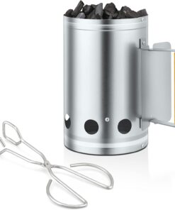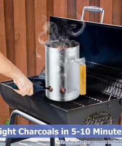 Joyfair Charcoal Chimney Starter with Clamp Set. Portable BBQ Grill Fire Starter for Outdoor Camping/Grilling/Cooking. Heavy Duty & Air Inlet Design. Heat Shield & Wooden Handle. plus Screwdriver