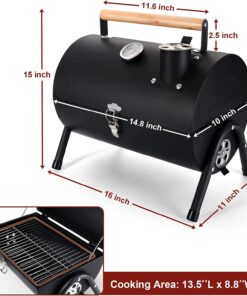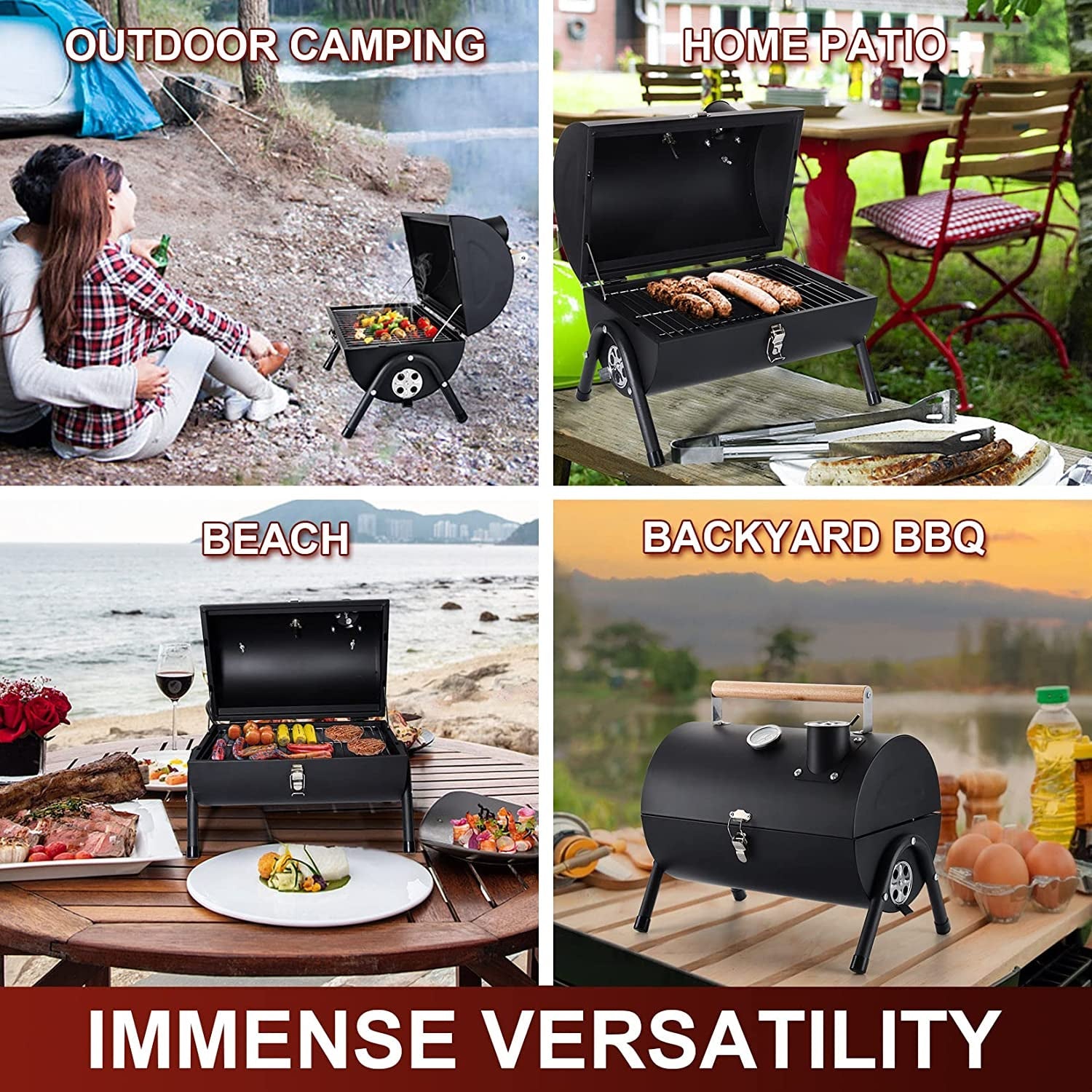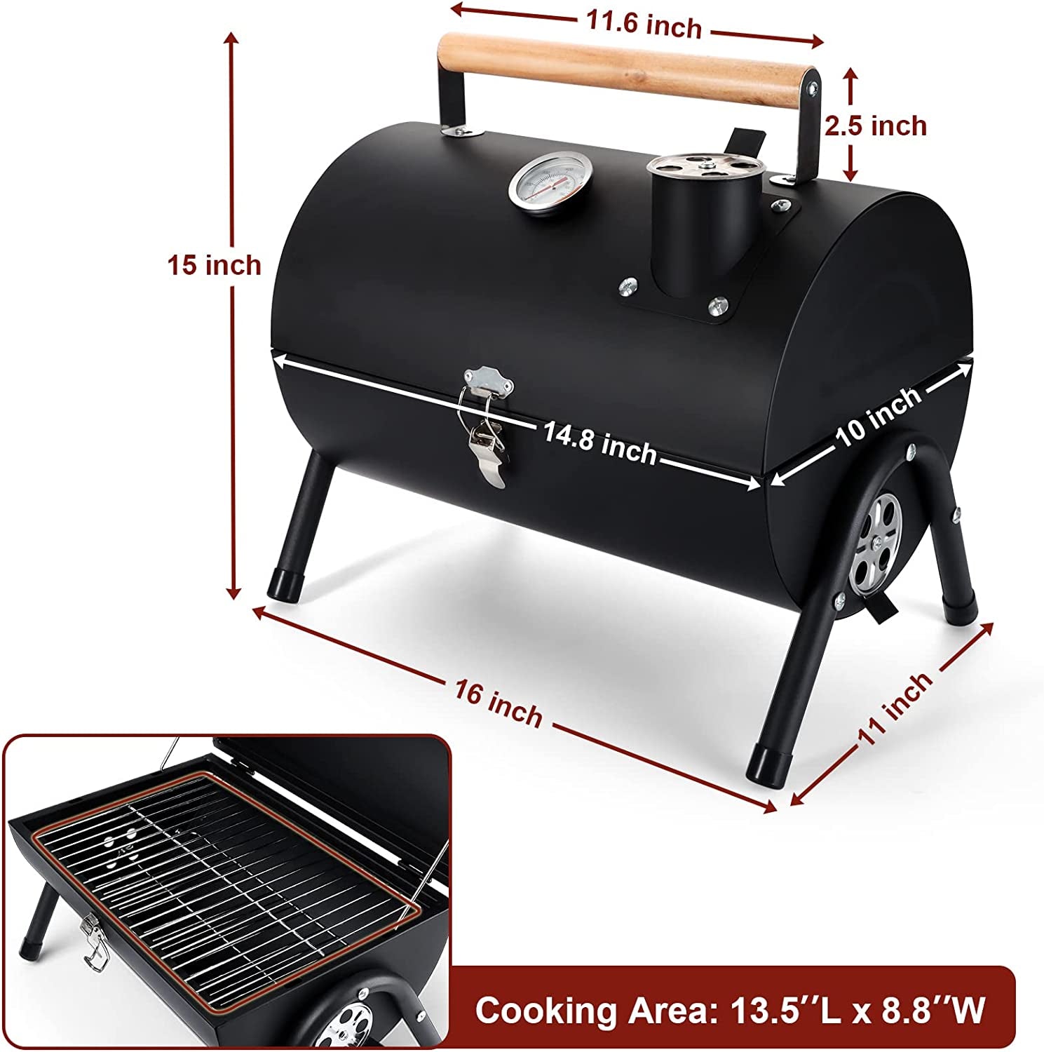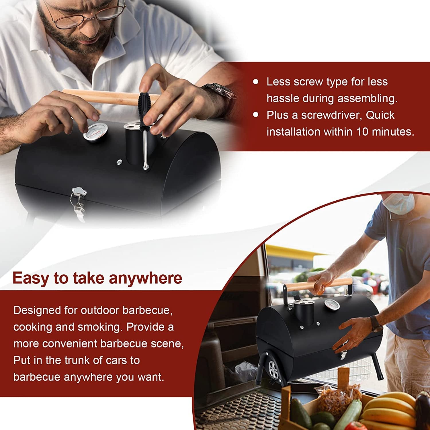 - 【PROTABLE CHARCOAL GRILL】 Innovative cylindrical design made it portable to put in the trunk of cars to barbecue anywhere you want. Ideal for outdoor grill/ patio cooking/ backyard barbecue. Can be assembled with the manuals come with package within 10 minutes. Less types of screws. Reduce the hassle to match. Plus a screwdriver for easy assembly