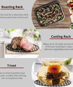 - [ROASTING & COOLING RACK FOR ROASTER PAN] JY COOKMENT roasting rack & cooling racks for cooking and baking. Perfect for roasting. grilling. baking. broiling. bbq. & drying meat. fish. vegetables & desserts; Enameled finished PFOA free ; use as a kitchen tool to cool down meats and baked goods or to rest hot pans on