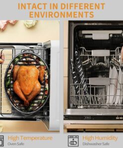 - [OVEN-SAFE. MULTI-USE DESIGN]: JY COOKMENT roasting rack is safe for oven-use up to 575℉; This cooling rack is designed for oven use so you can confidently roast. bake. grill. smoke. dry. and bbq; all this is possible due to the high heat tolerance of the 100% food grade enamel finished design