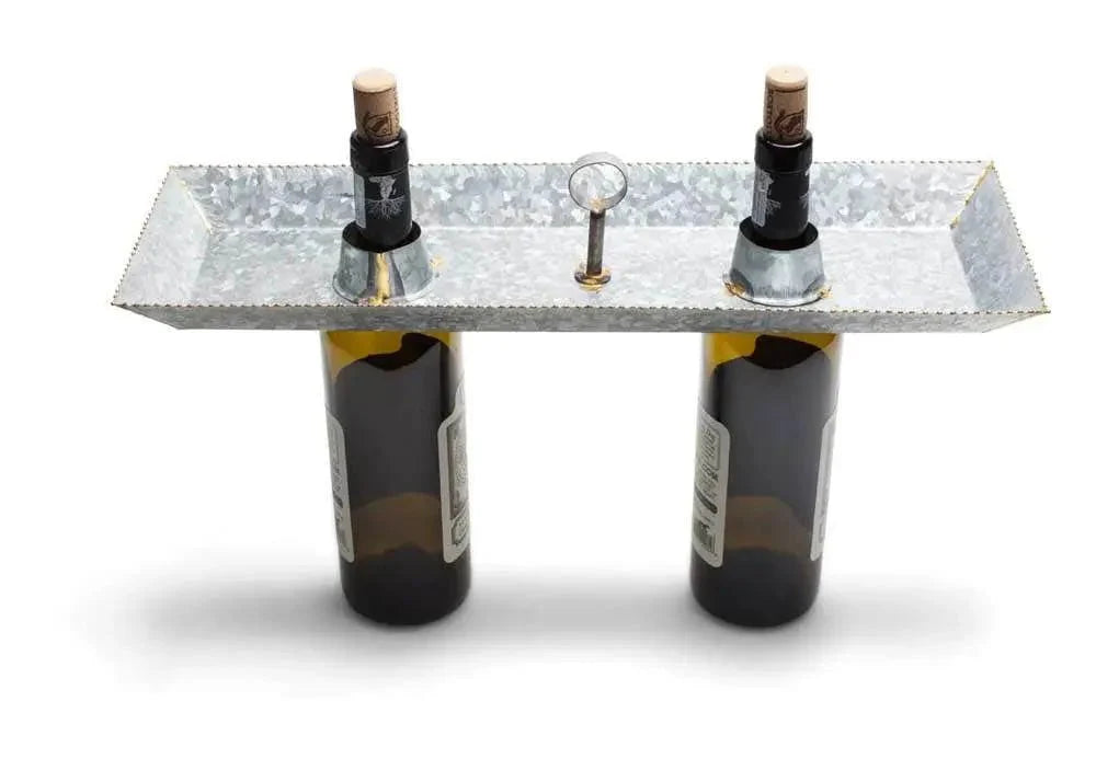 Lift your spirits with this unique and beautiful Kalalou Galvanized Double Bottle Serving Topper. Sits atop two bottles or on flat surfaces.