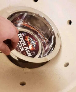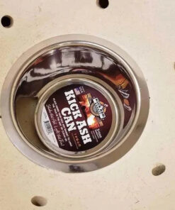 The Kick Ash Can will significantly reduce the work of clean up. Measures: Top Side: 7.25 Inside Dia.. 8.75 Outside Dia. and 3.5 Depth. Bottom Dia. is 6.