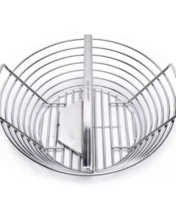 Designed for use in the Kamado Joe Classic Joe and Big Green Egg Large Kick Ash Baskets. The Kick Ash Stainless Steel Large Basket Charcoal Divider is adjustable for indirect and direct grilling at the same time. Place the Kick Ash basket divider in your basket to allow for 1/3 to 2/3 of your typical volume of lump charcoal. Measures 13.25 Top Width. 7.5 Bottom Width and 4.88 Height.