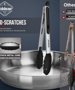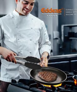 - FOOD GRADE MATERIALS – Eddeas tongs for cooking featuring a food grade silicone head. the tongs are gentle on your nonstick cookware so you can worry less about scratching and wear and tear. silicone is heat resistant up to 484 degrees Fahrenheit. making it a great option for nearly any cooking task.