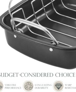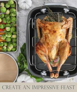 - FAST AND EVEN HEATING: Heavy duty steel construction allows a home cook to roast tender. moist. and evenly cooked foods on all sides as well as making quick work of them in 450 degree Fahrenheit.With no effort you could make the perfect caramelizated turkey with gravy and browned little potato chunks. Suitable for seasoned cooks or beginner looking for the perfect roasting pans for this year’s turkey dinner.