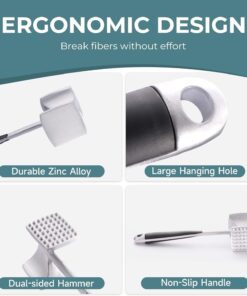 - Ergonomic Design: We are always looking for a meat tenderizer with a comfortable handle that fits perfectly in your hand. This meat hammer from Kitexpert fits that bill which allows the mallet and gravity to do all the work in less time. Enjoy your cooking time!