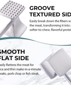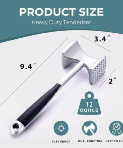 - Dual-Sided Hammer: You can even use the textured side for transforming it into a softer-to-chew. flavorful protein. or use the smooth side for flattening the steak. Size: 9.4 inches long. 3.4 inches wide. Unit Weight 9.5 ounces.