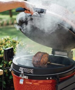The durable cast aluminium JoeTisserie transforms the Kamado Joe Classic grill into a new kind of spit. harnessing the self-basting action of a rotisserie inside the signature Kamado Joe high-fire ceramic body for meats that are smoky. juicy. and tender. The quiet-but-powerful motor can spin up to 50 pounds of chicken. prime rib. or Boston butt.